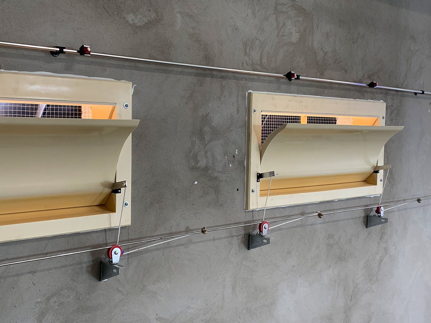 - Se montează în interiorul halei, de-a lungul pereților, pe stâlpi, în dreptul guriilor de admisie, etc.;